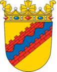 Герб Республики Ингрия — щит желтого цвета, увенчанный королевской короной. По диагонали щита расположена река и крепостные стены.